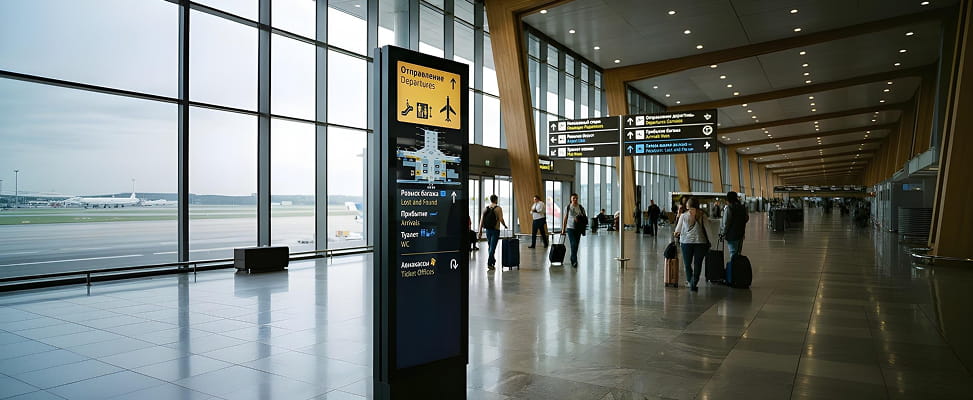 Для крупных объектов цифровые табло снижают нагрузку на персонал справочных служб и повышают удобство для посетителей.