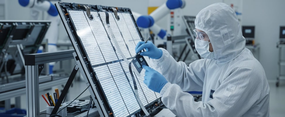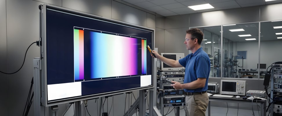 После сборки модуль проходит калибровку. Настраиваются яркость, цветовая температура, баланс белого и равномерность подсветки. Проводится проверка на наличие дефектных пикселей, цветовых и геометрических искажений. Для панелей, которые будут использоваться в Digital Signage, уделяется внимание поведению при вертикальной ориентации и длительной работе.