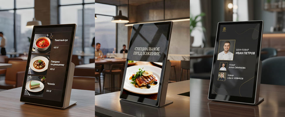 Примеры контента для цифровых тейбл-тентов в ресторане