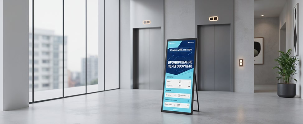 Штендер относится к самым простым и доступным рекламным конструкциям для помещений. Он представляет собой напольную стойку с устойчивыми опорами и компактными габаритами. Такие конструкции легко перемещать и использовать на временных точках продаж, промо-акциях и выставках.