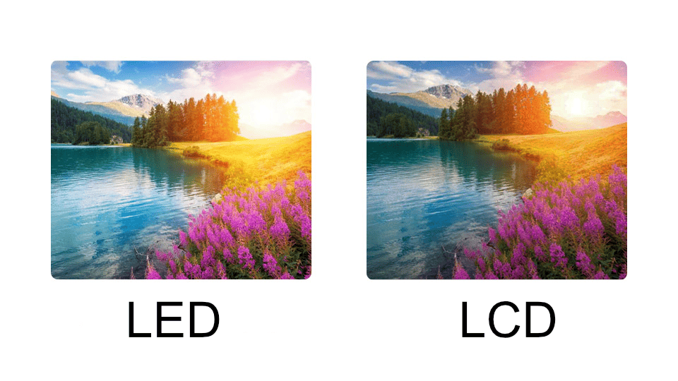 ЖК-экраны зависят от задней подсветки, свет которой проходит через фильтры и слои матрицы. Это часто приводит к потере яркости, появлению бликов и неравномерности освещения, особенно при использовании в помещениях с интенсивным светом.