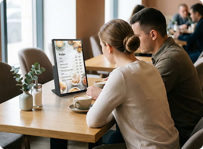 Обновленные Digital Table-Tent: компактные, яркие дисплеи диагональю 10 и 15 дюймов для увлекательного взаимодействия с клиентами, быстрым откликом и надёжными подключениями. Работает на базе Android и имеет прочный корпус